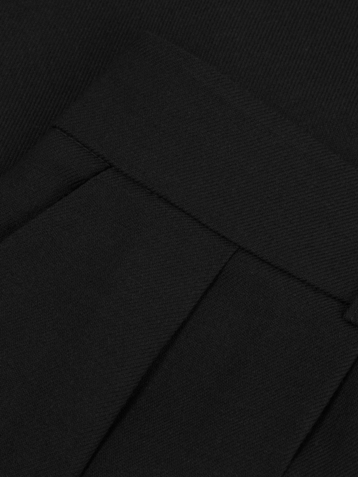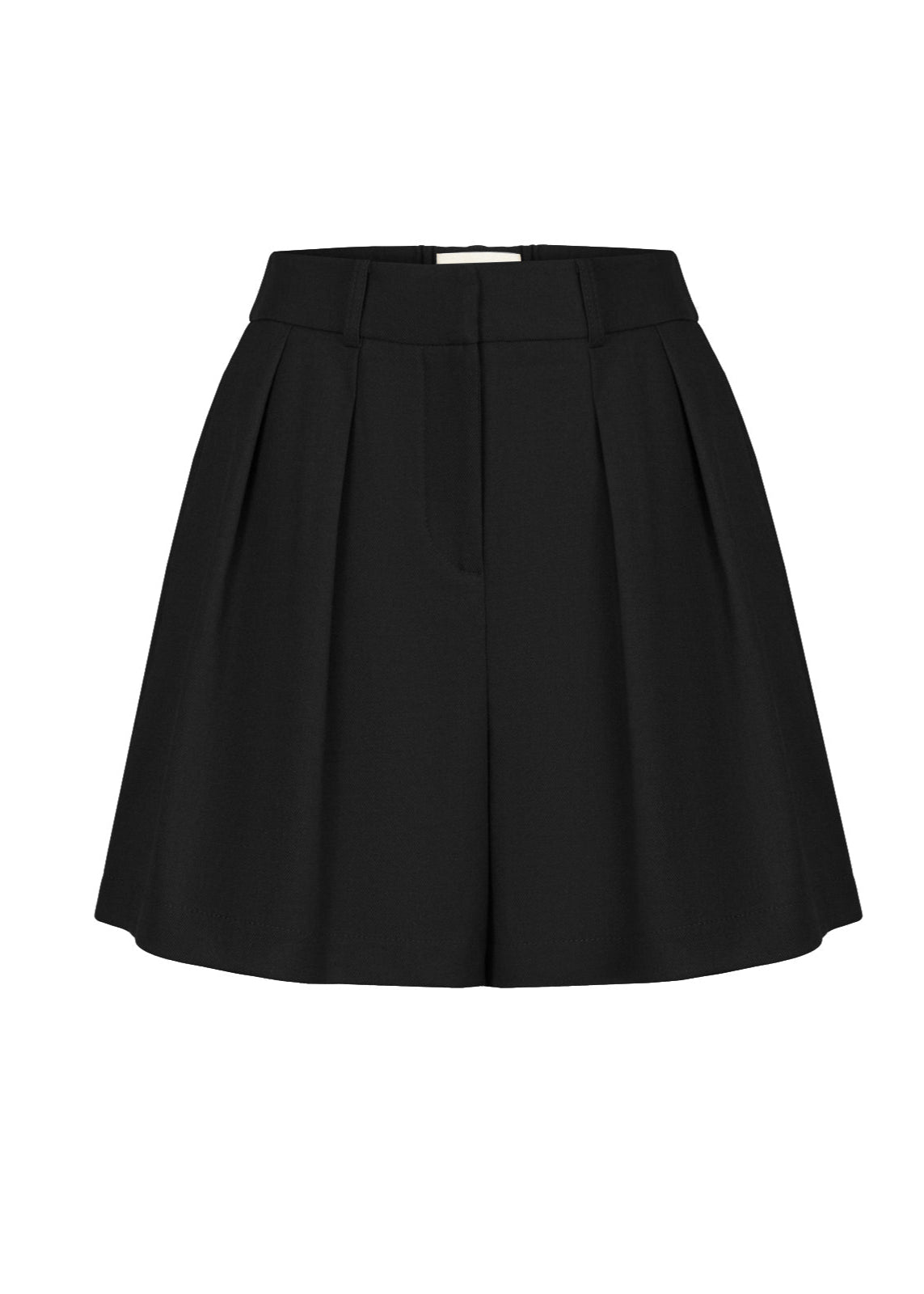 Eleganckie, rozkloszowane szorty w odcieniu głębokiej czerni. Wykonane z przyjemnego materiału, zapewniają komfort noszenia i swobodę ruchów. Dzięki subtelnym zakładkom i klasycznemu krojowi idealnie sprawdzą się zarówno w casualowych, jak i bardziej eleganckich stylizacjach. Doskonałe na letnie dni i wyjątkowe okazje.