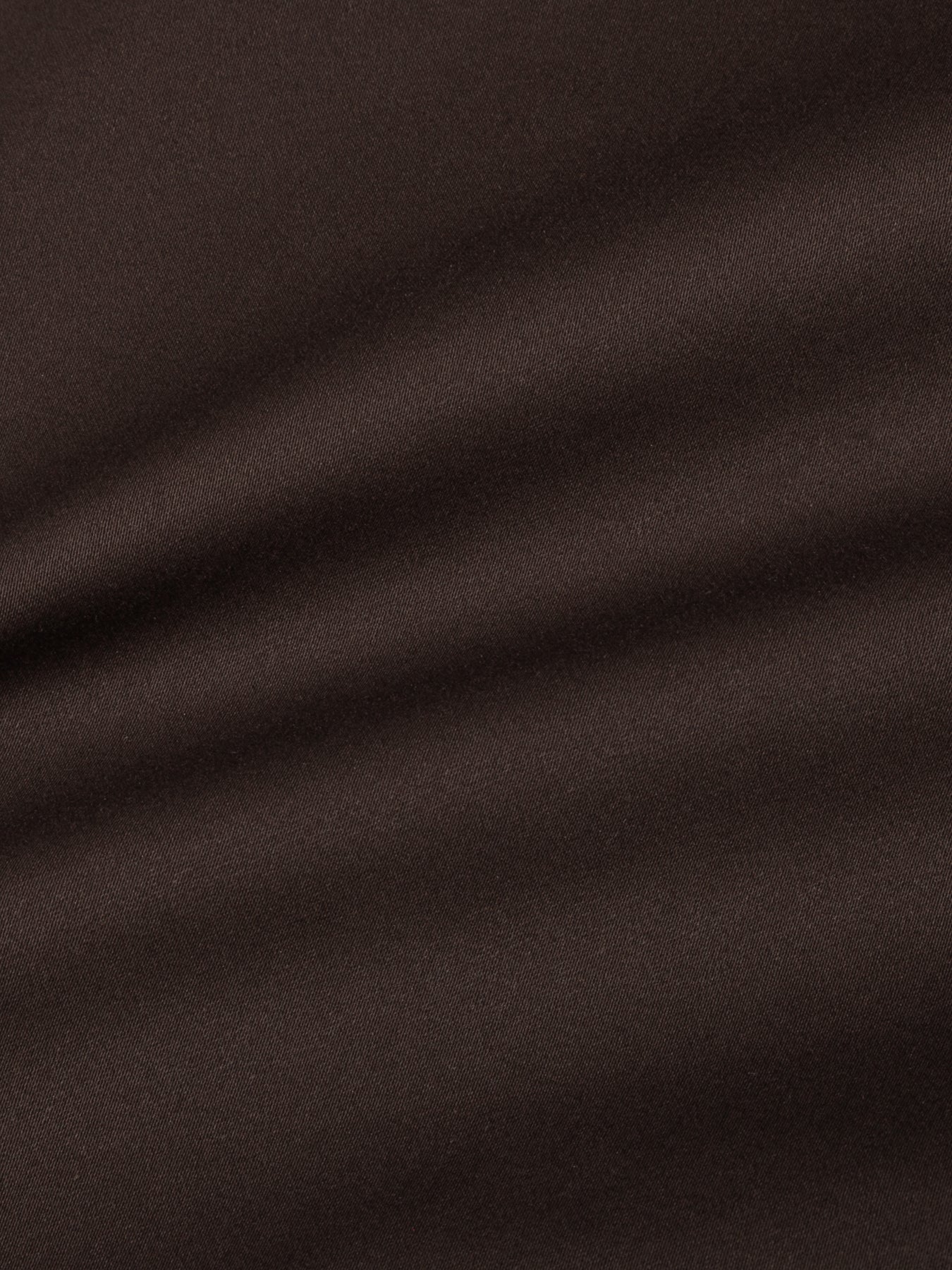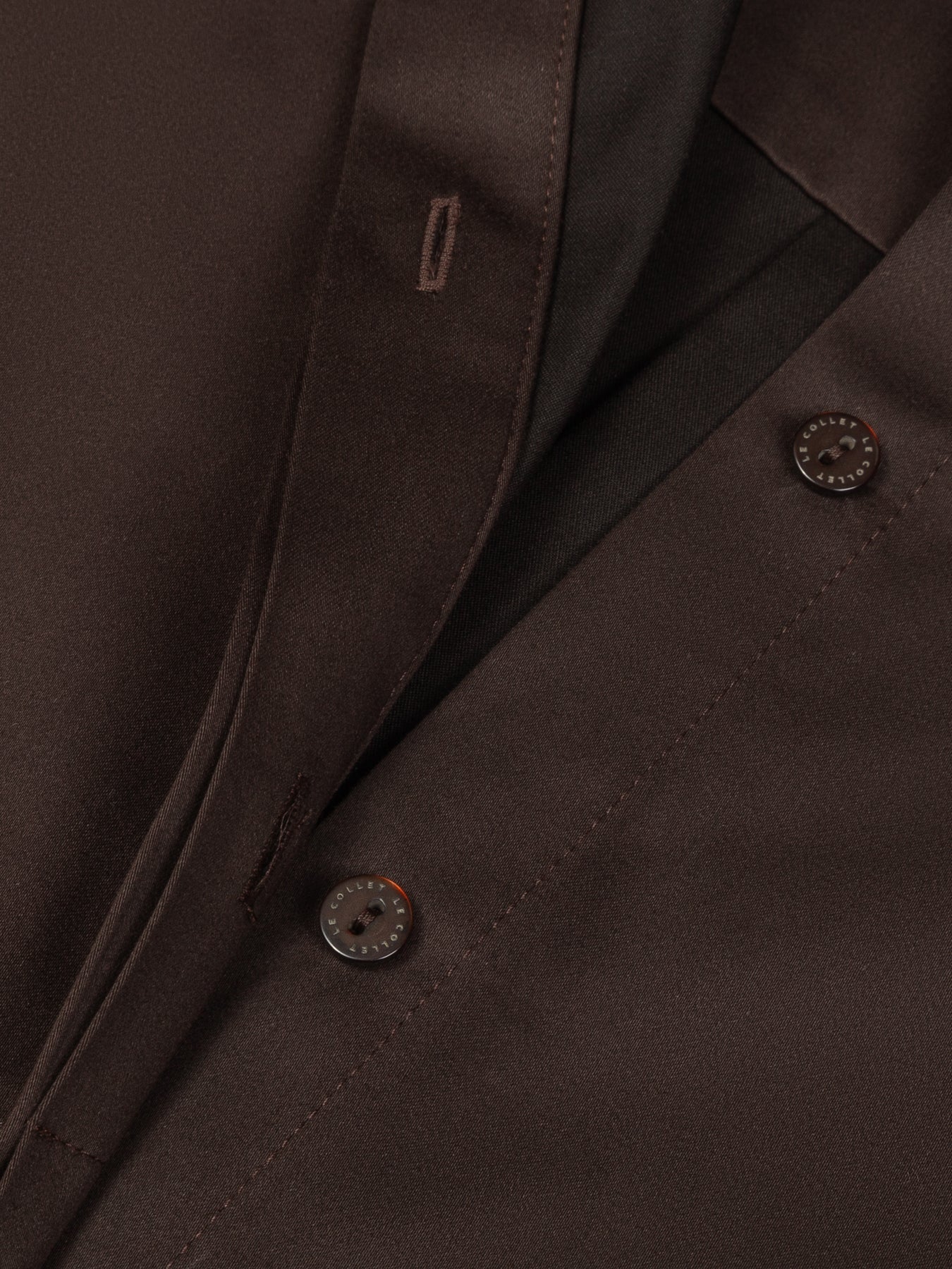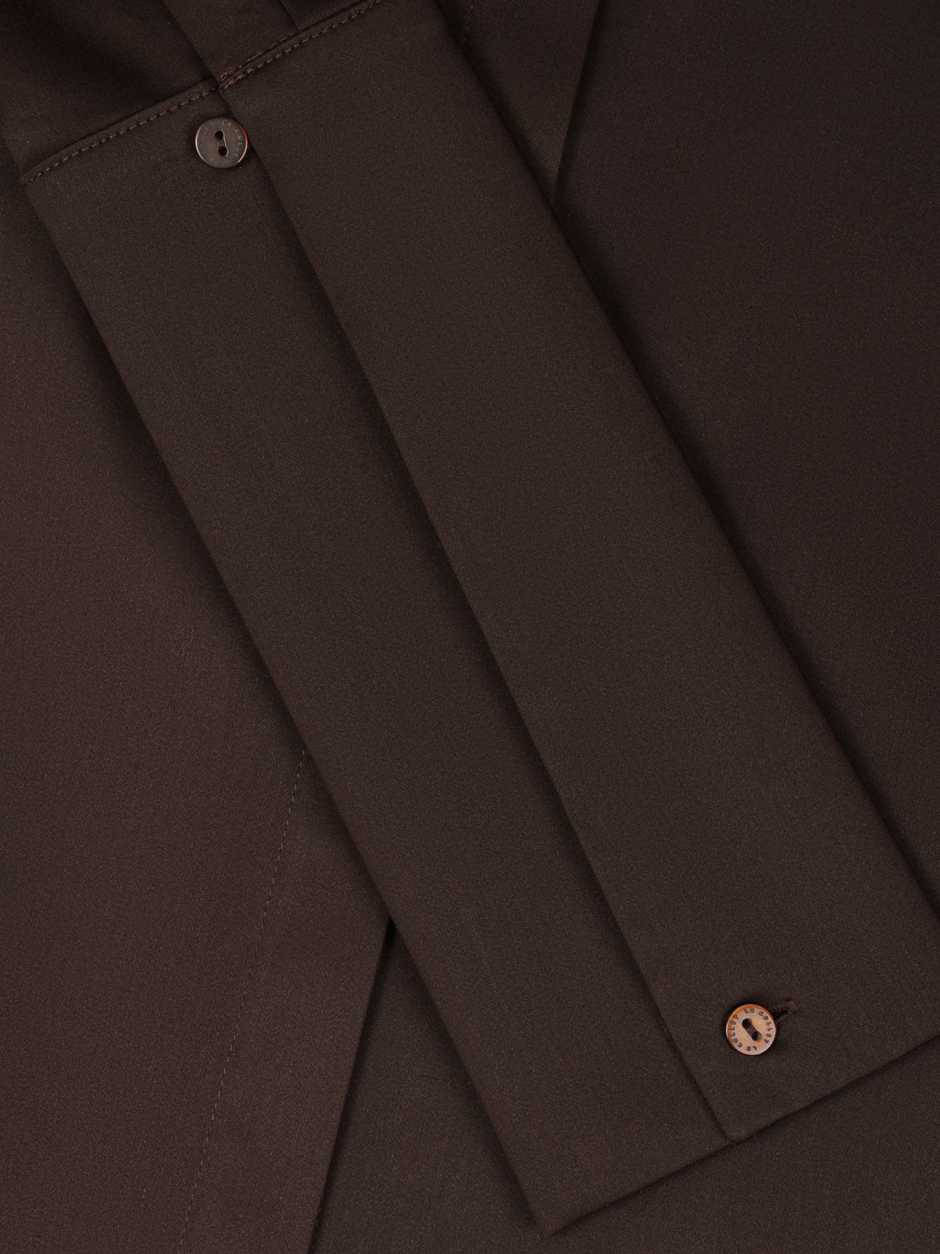 Minimalistyczna koszula w odcieniu głębokiej czekolady, utrzymana w oversize’owym kroju. Luźna linia z obniżonymi ramionami nadaje sylwetce lekkości, a przedłużone mankiety dodają całości wyrazistego charakteru. Ukryta listwa guzikowa podkreśla elegancki, czysty design.