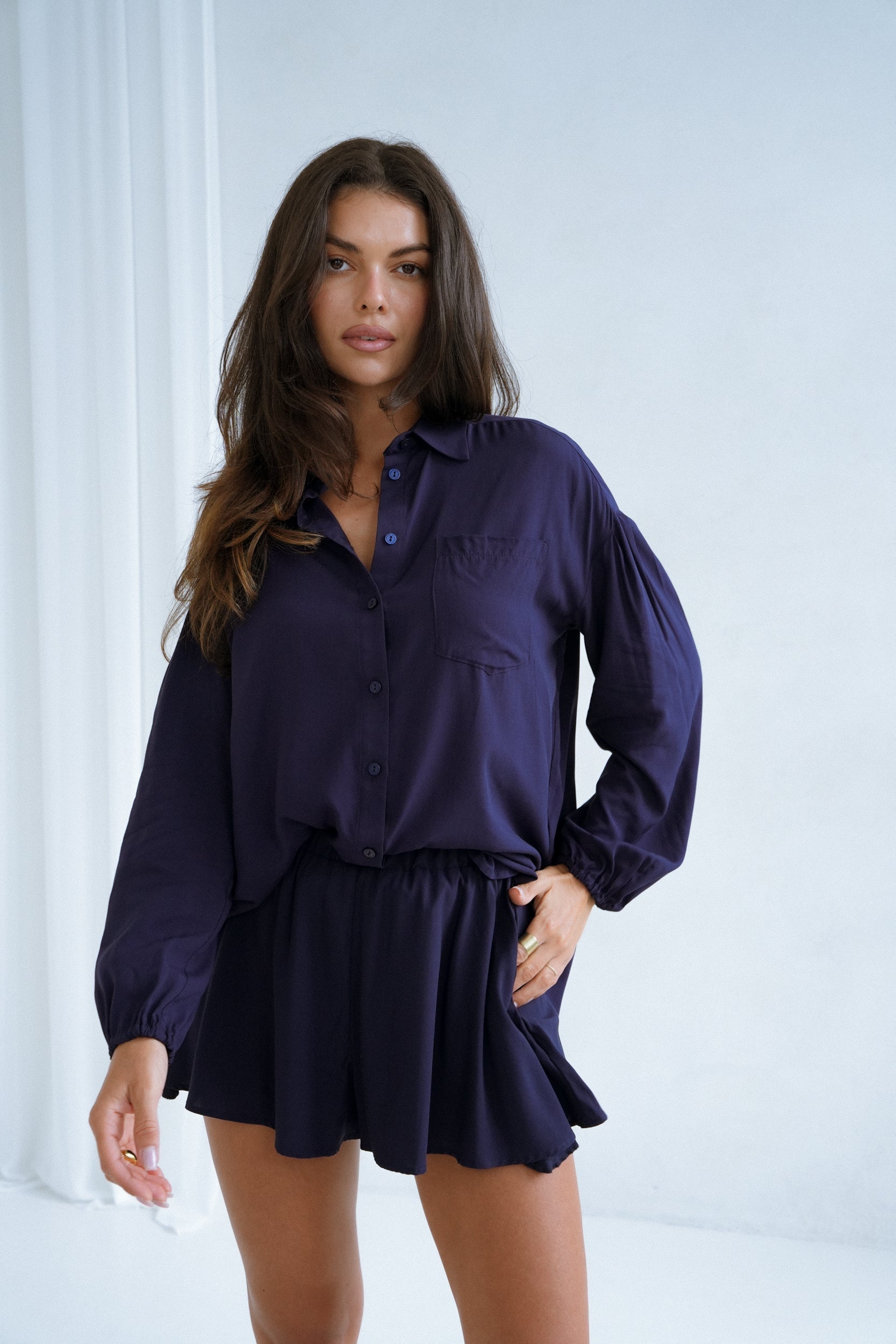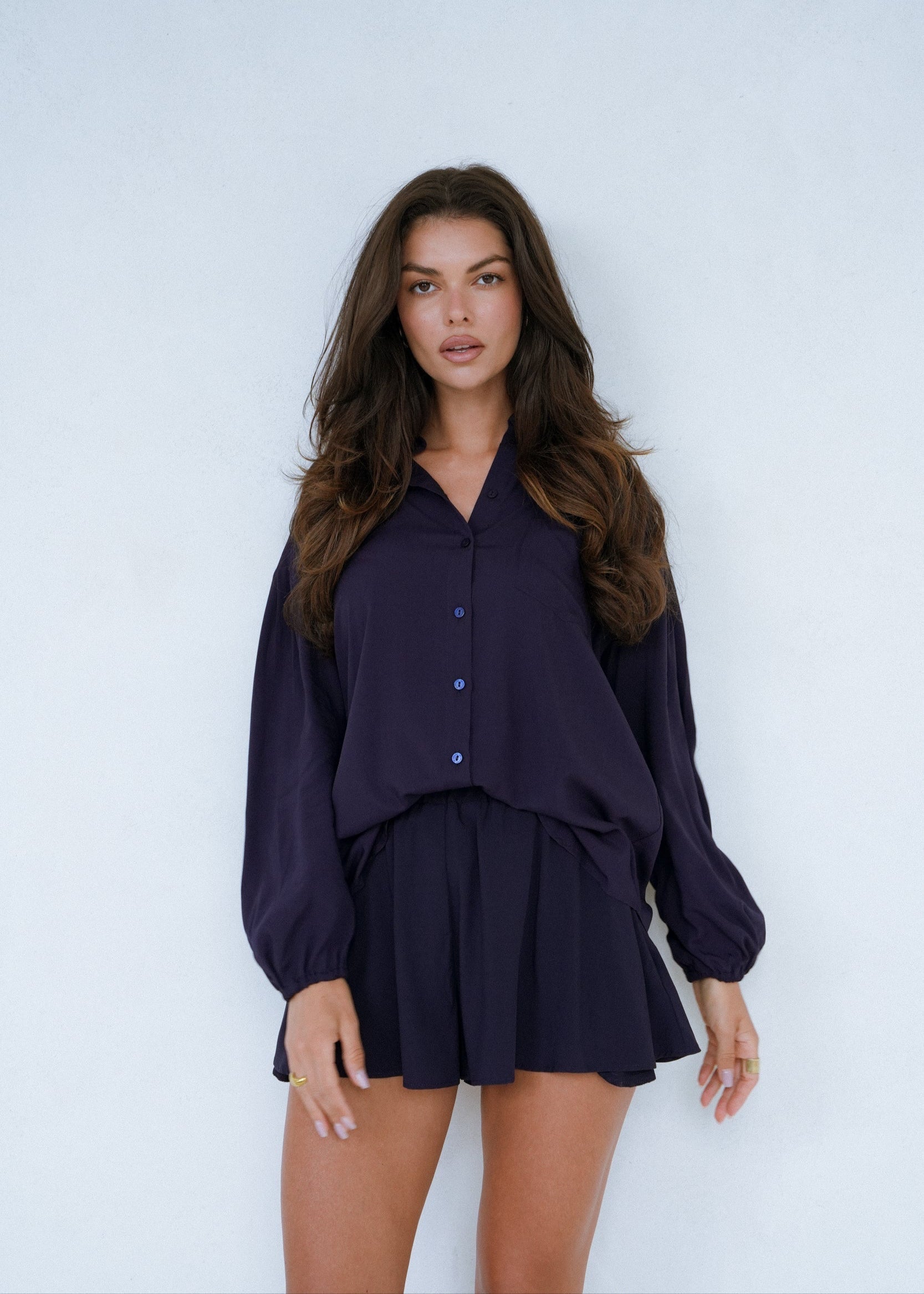 Koszula w kolorze intensywnego grantu to kwintesencja letniej klasyki. Luźny, oversize’owy krój z obniżoną linią ramion i długimi rękawami sprawia, że nosi się ją niezwykle swobodnie. Idealna do stylizacji na plażę, do miasta lub jako narzutka na top — można ją nosić rozpiętą, związaną lub klasycznie zapiętą