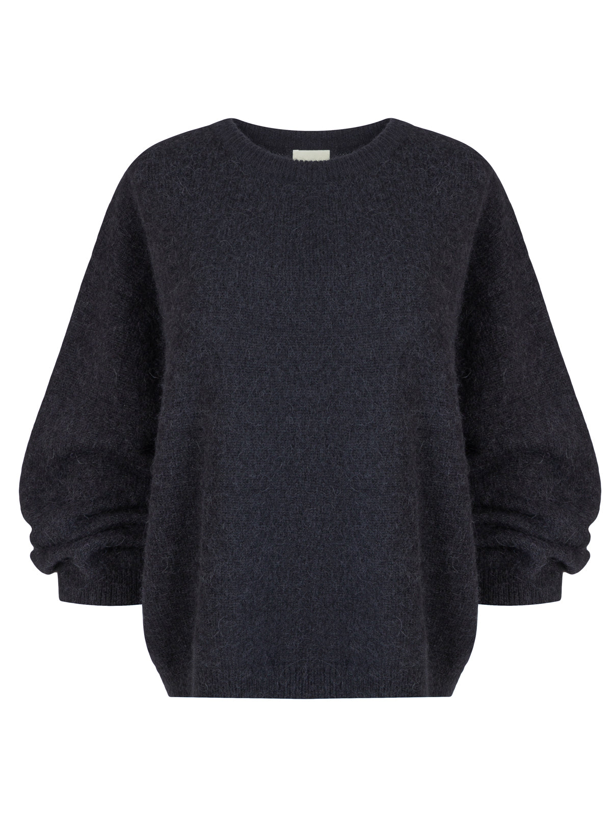 Miękki, oversize'owy sweter w kolorze grafitowym to idealna baza do eleganckich i codziennych stylizacji. Wykonany z puszystej dzianiny, zapewnia komfort i ciepło. Długie rękawy i klasyczny dekolt sprawiają, że świetnie komponuje się zarówno z plisowaną spódnicą, jak i ulubionymi jeansami.