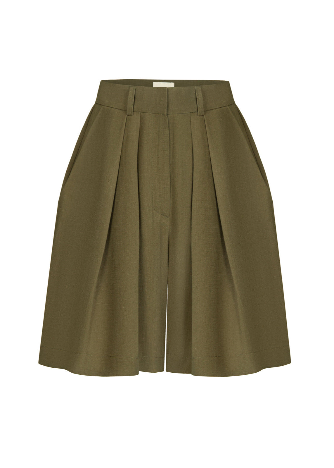 Eleganckie, rozkloszowane bermudy w odcieniu zgniłej zieleni. Wykonane z przyjemnego materiału idealnie skomponują się zarówno z topem Tori, jak i swetrem Diana.