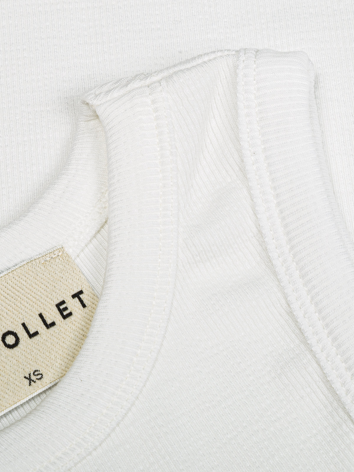 Biały top bez rękawów o dopasowanym kroju, wykonany z prążkowanego materiału. Prosty fason z wycięciem pod szyją podkreśla ramiona i stanowi świetną bazę codziennych stylizacji.